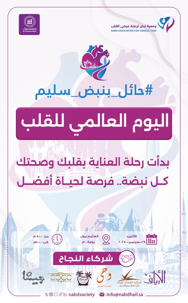 خبر |😍👏🏻 بمناسبة #اليوم_العالمي_للقلب ينطلق معرض #حائل_بنبض_سليم بدأت رحلة العناية بقلبك وصحتك كل نبضة .. فرصة لحياة افضل